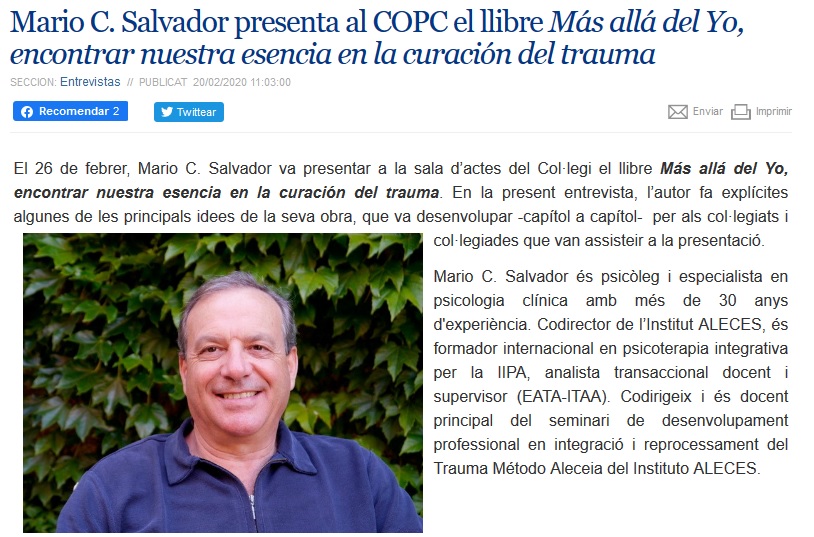Artículo COPC: Mario Salvador presenta al COPC el libro «Mas allá del Yo»